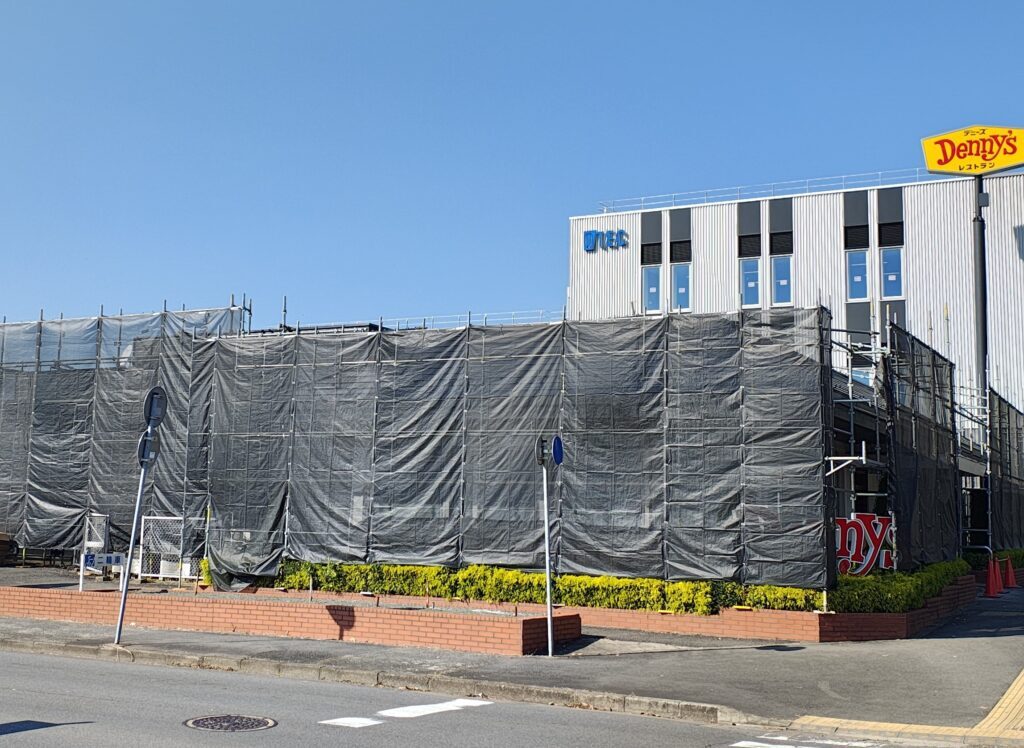 先日(2025年11月7日)、デニーズ 筑波学園都市店の前を通りかかったところ、建物に養生···